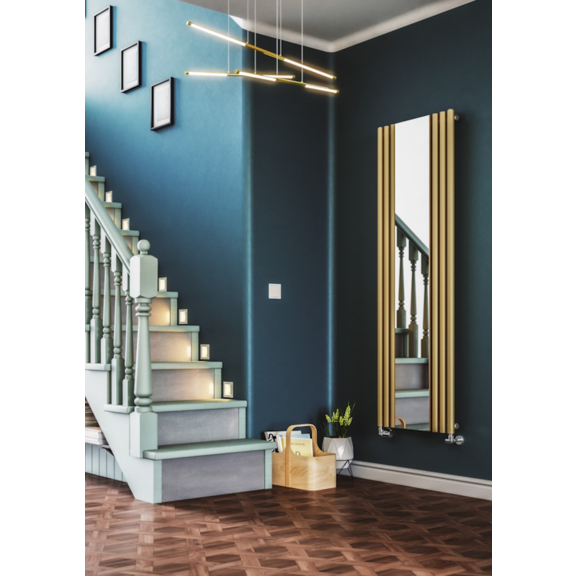 Rolo Mirror je elegantní vertikální radiátor se zrcadlem, vhodný do různých interiérů, zejména síní. Jeho univerzální tvar a praktické využití jej dělají vhodným i pro koupelny. Se širokou možností barevných provedení lze přizpůsobit radiátor jakémukoli stylu.