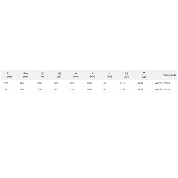 Je k dispozici ve dvou velikostech a mnoha barevných provedeních. Tepelný výkon je 1000W.