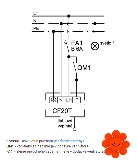 S – dva režimy nastavení: 1. trvalý chod s nízkým průtokem, 2. zvýšení výkonu z trvalých nízkých otáček na vysoké pomocí externího spínače nebo světelného spínače,