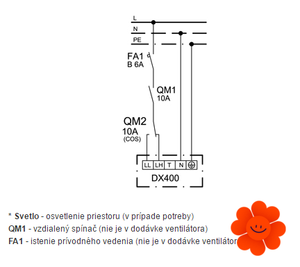 - ovládaný vzdáleným spínačem (není součástí dodávky ventilátoru)
