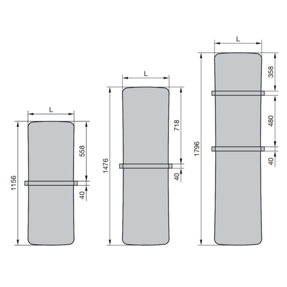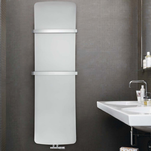 Vertikální model Zehnder Folio Belt je vhodný do obytných prostor i koupelen. Koupelnová verze je vybavena jedním nebo dvěma chromovanými držáky na ručníky, v závislosti na výšce radiátoru, což dodává prostoru praktičnost a pohodlí. Dostupný je s klasickým středovým 50 mm připojením nebo v nové variantě s integrovaným ventilem, která zdůrazňuje moderní technické řešení.